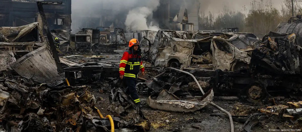 კიევში რუსული დარტყმების შემდეგ ხანძარი გაჩნდა