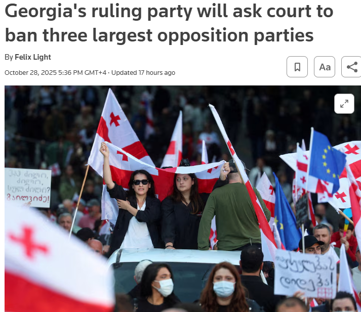 როიტერი პარტიების აკრძალვაზე სტატიას აქვეყნებს და საქართველოს ავტორიტარული მმართველობისკენ სწრაფვის ქვეყანას უწოდებს
