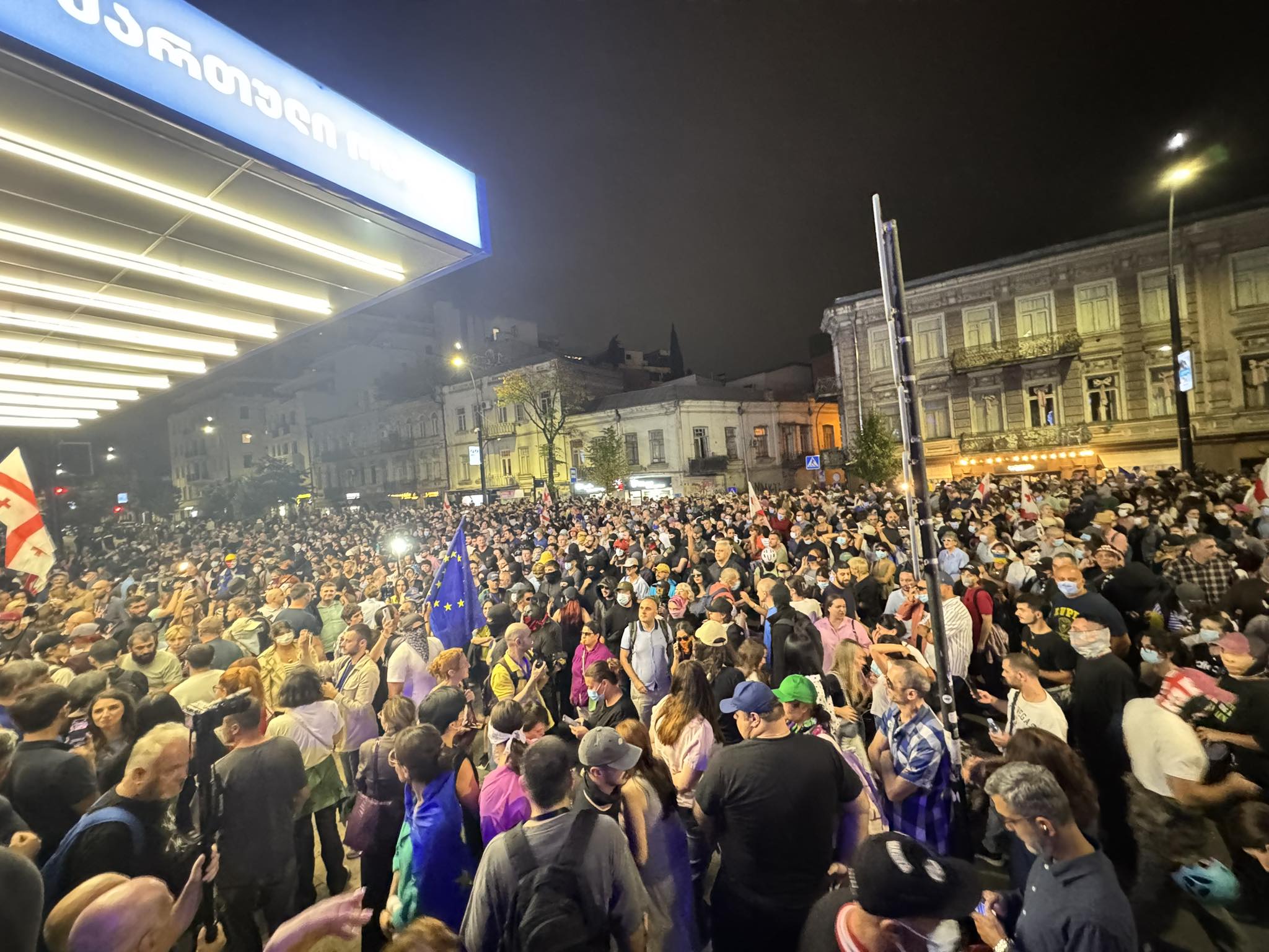 კალაძის საარჩევნო შტაბთან ხალხიუ იკრიბება - აქციის მონაწილეები სხვადასხვა ლოკაციიდან მელიქიშვილზე მიდიან