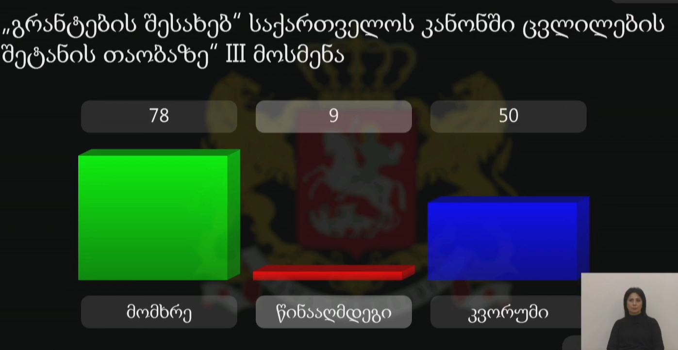 ოცნების პარლამენტმა გრანტების კანონში გამკაცრებული ცვლილებები საბოლოოდ დაამტკიცა