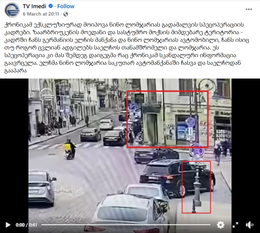 შეხვედრა დახურული იყო, შესაბამისად, მისი გადამოწმება შეუძლებელია. ნინო ლომჯარიამ ციტატის ნამდვილობა იმავე დღეს უარყო, მას "უზნეო ტყუილი" უწოდა და დაწერა, რომ “იმედს” ცილისწამებისთვის უჩივლებდა. “მითების დეტექტორმა” ტელეკომპანია „იმედს“ კითხვით მიმართა, თუ რა წყაროსა და მტკიცებულებაზე დაყრდნობით გაავრცელა არხმა ლომჯარიას ციტატა. კერძოდ, არსებობდა თუ არა კონფიდენციალური წყარო ან რაიმე მტკიცებულება, რომელიც შეხვედრის შინაარსს დაადასტურებდა. “იმედს” პუბლიკაციის გამოქვეყნების მომენტისთვის ჩვენს შეკითხვაზე პასუხი არ დაუბრუნებია. იმავე დღეს, უკვე საღამოს 20:11 საათზე, იმედმა გაავრცელა ვიდეომასალა, რომელიც გადაღებულია თბილისში, ზაარბრიუკენის მოედნისა და სასტუმრო "მოქსის" მიმდებარე ტერიტორიაზე. მტკიცების მიხედვით, კადრებში ნინო ლომჯარია ჩანს, რომელიც საელჩოს მანქანიდან საკუთარ ავტომობილში გადადის. ვიდეოს ერთვის შემდეგი ტექსტი: