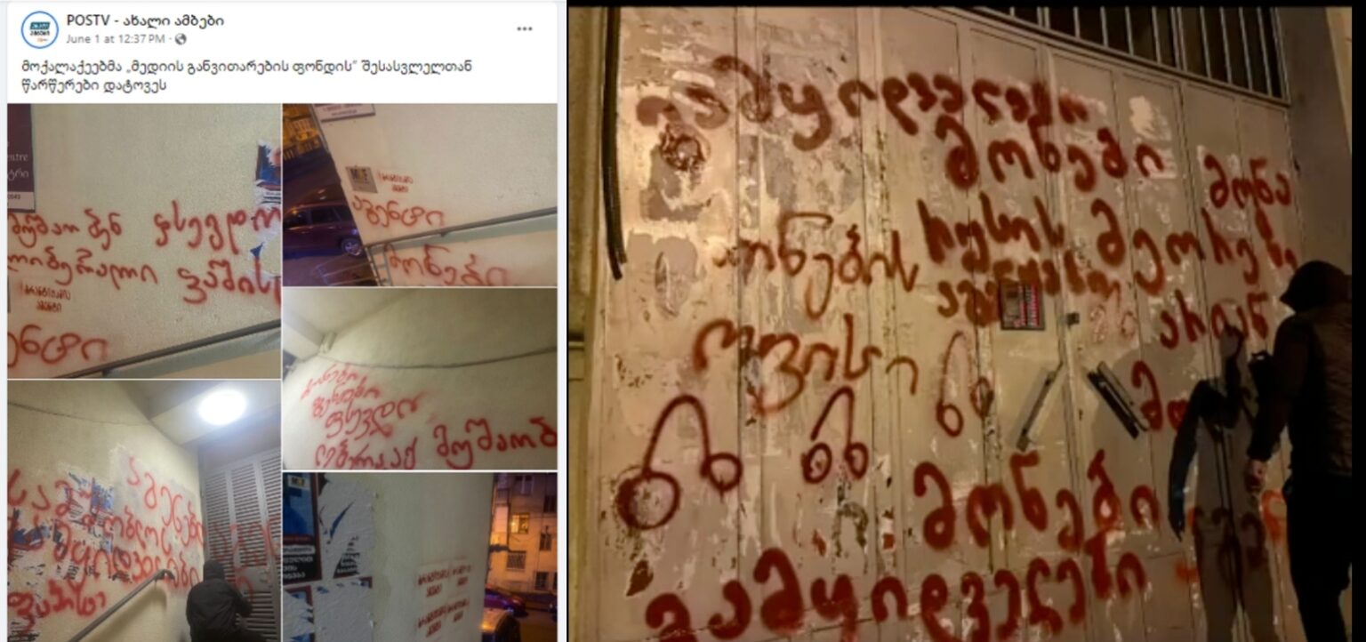პრაიმ ტაიმი – 2025, 13 ნოემბერი. მასალაში ამტკიცებენ, რომ მათ ბრიუსელიდან მიიღეს დოკუმენტი, რომელიც ადგილობრივ ოპოზიციას ევროკავშირის კონკრეტულმა მაღალჩინოსნებმა გამოუგზავნეს. პრაიმ ტაიმმა გაავრცელა ტექსტი, რომელიც აქტივისტებმა პარლამენტის წინ წაიკითხეს. საყურადღებოა, რომ ოპოზიციის წარმომადგენლებისა და აქტივისტების თქმით, აღნიშნული ტექსტის შინაარსი ჩატის მეშვეობით თანხმდებოდა. არასამთავრობოების ოფისებზე ვანდალიზმის შემთხვევის ადგილიდან გაშუქება სახელისუფლებო მედიის მიერ 2024 წელს, ე.წ. “აგენტების შესახებ” კანონთან დაკავშირებული პროტესტის პარალელურად, არასამთავრობო ორგანიზაციების ოფისებზე განხორციელებულ ვანდალურ თავდასხმებს სახელისუფლებო მედია საშუალებები შემთხვევის ადგილიდან აშუქებდნენ. ქვემოთმოყვანილ მაგალითებში ჩანს 2 შემთხვევა, როდესაც სახელისუფლები POSTV-იმ მედიის განვითარების ფონდისა (MDF) და ინფორმაციის თავისუფლების ინსტიტუტის (IDFI) ოფისებზე განხორციელებული ვანდალიზმი რეალურ დროში გააშუქა და აღნიშნულ ქმედებას “მოქალაქეთა სპონტანური საპროტესტო გამოხატულება” უწოდა.