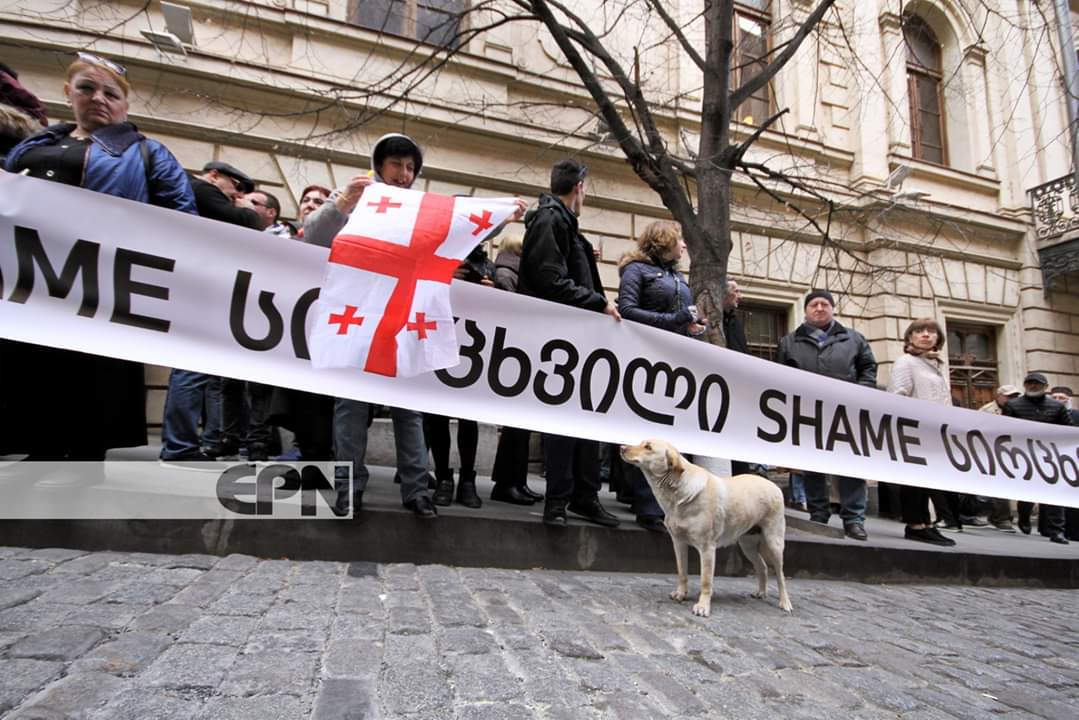ზუსტად ერთი წლის წინ ეს ღიად კოლაბორაციონისტული ფაქტი ათასობით ადამიანმა პარლამენტის წინ გააპროტესტა და ხელისუფლებამ ეს ხალხი, რუსეთისთვის საჩვენებლად, სამაგალითოდ დასაჯა.
