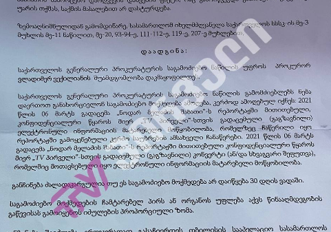 სასამართლომ პროკურატურას „ტვ. პირველიდან“ მასალების ამოღების უფლება მისცა