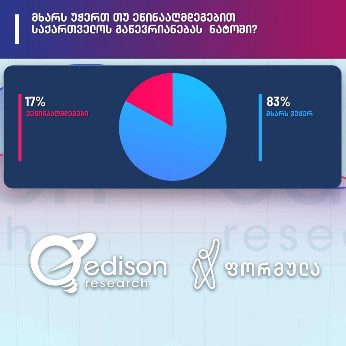 Edison Research - მოსახლეობის 90% მხარს უჭერს ევროკავშირში გაწევრიანებას, ხოლო 83% - NATO-ში