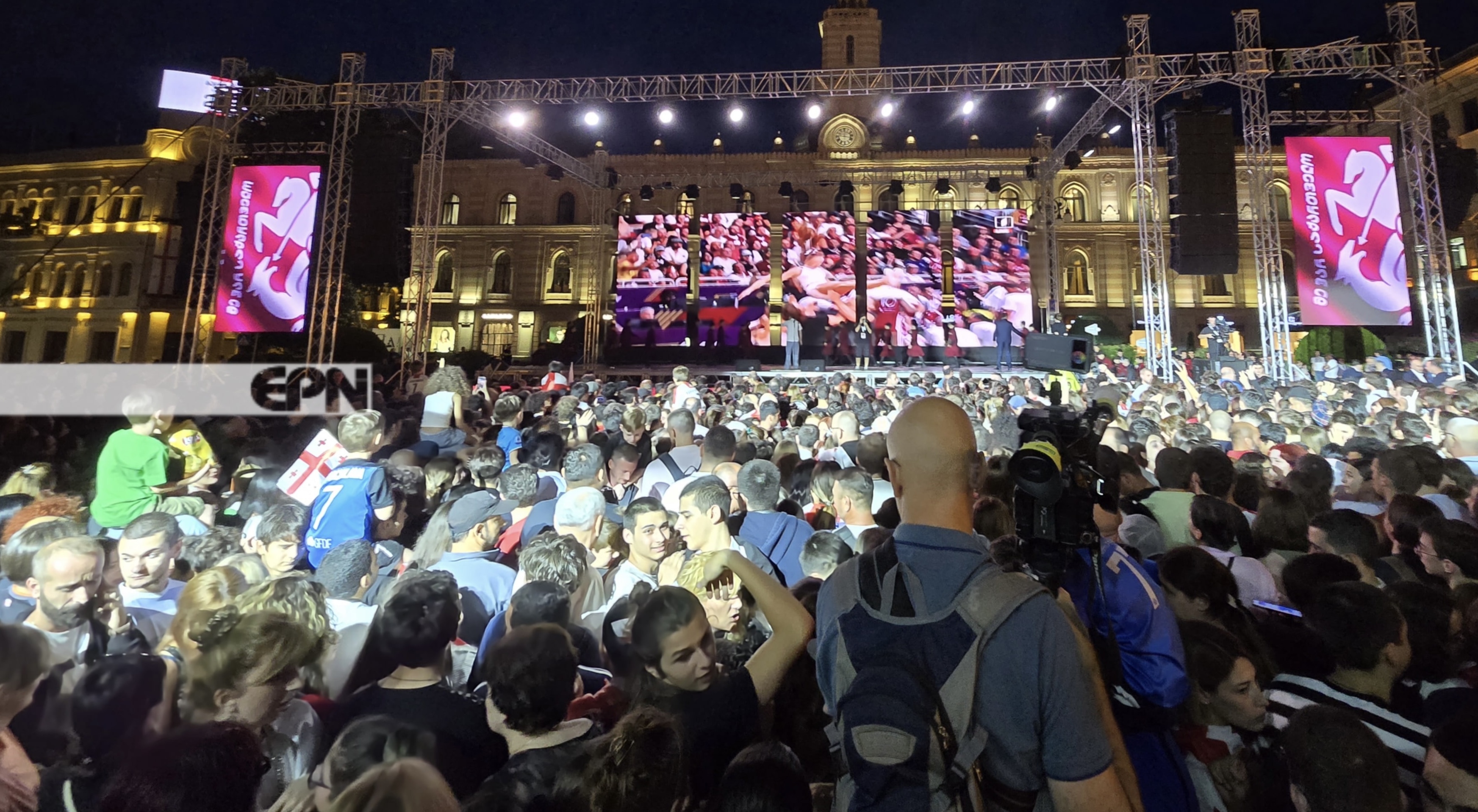 თავისუფლების მოედანზე, საქართველოს ეროვნული საფეხბურთო ნაკრების ფეხბურთელებისთვის დახვედრის ცერემონია იმართება.