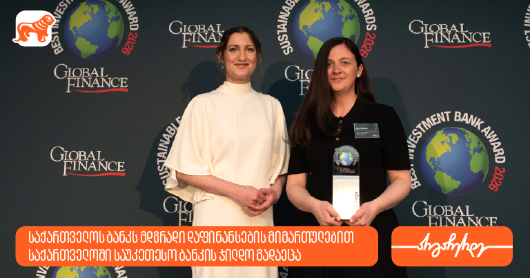 Global Finance-ის დაჯილდოების ცერემონიაზე საქართველოს ბანკს მდგრადი დაფინანსების მიმართულებით საქართველოში საუკეთესო ბანკის ჯილდო გადაეცა