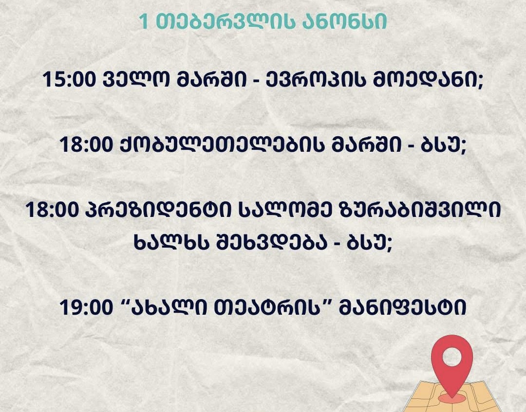 2 თებერვალს საქართველოს სხვადასხვა ქალაქში საპროტესტო აქციები გაიმართება