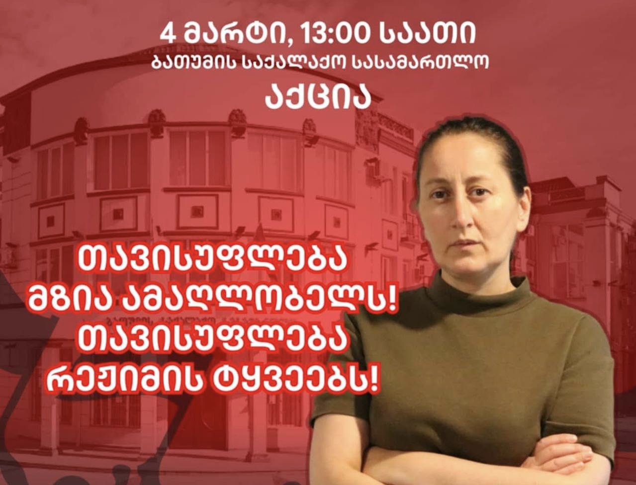 დღეს ბათუმში მზია ამაღლობელის პროცესის პარალელურად აქცია გაიმართება