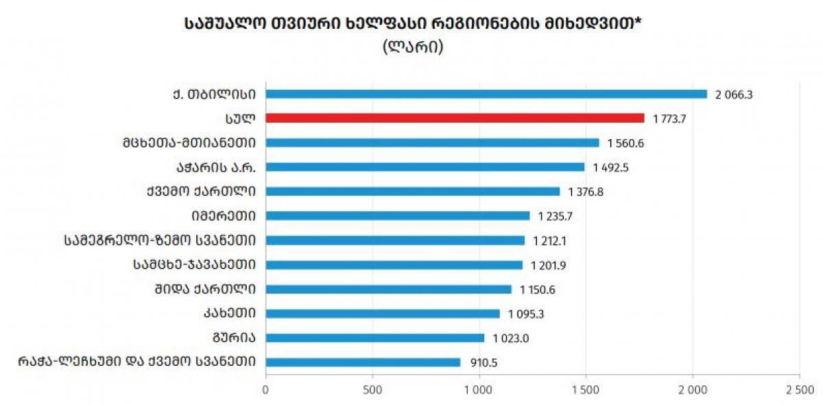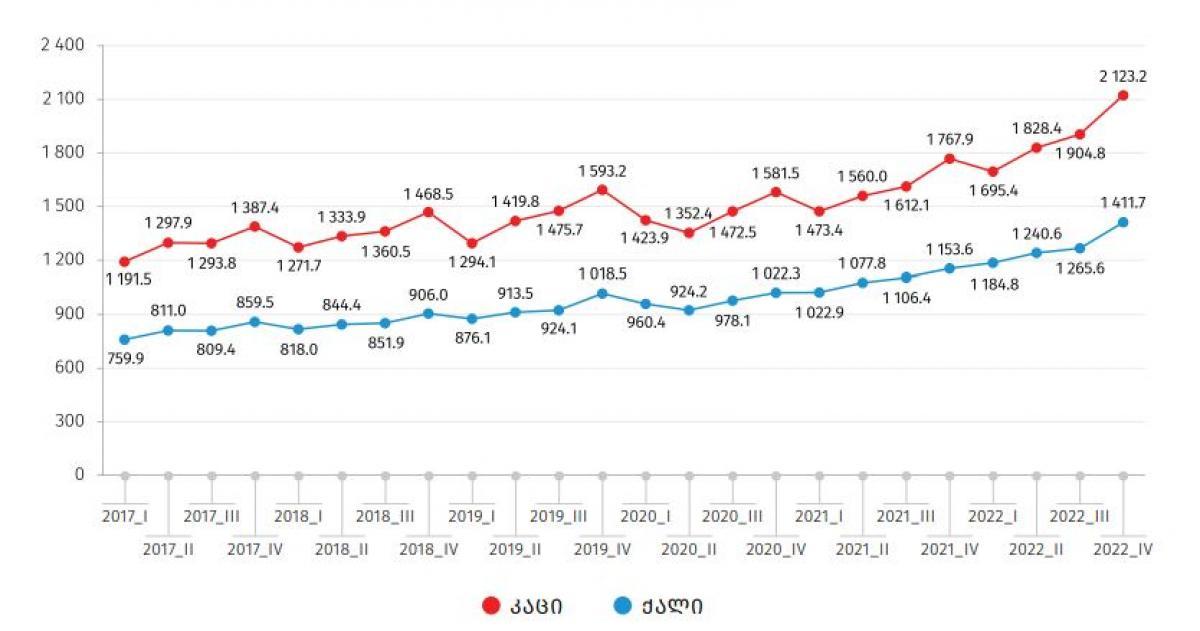 საქსტატი - 2022 წლის IV კვარტალში საქართველოში საშუალო ხელფასი 309 ლარით გაიზარდა და 1 773 ლარი შეადგინა