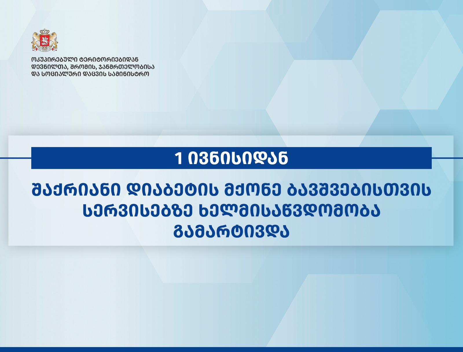ჯანდაცვის სამინისტრო - შაქრიანი დიაბეტის დიაგნოზის მქონე ბავშვებისთვის სერვისებზე ხელმისაწვდომობა გამარტივდა