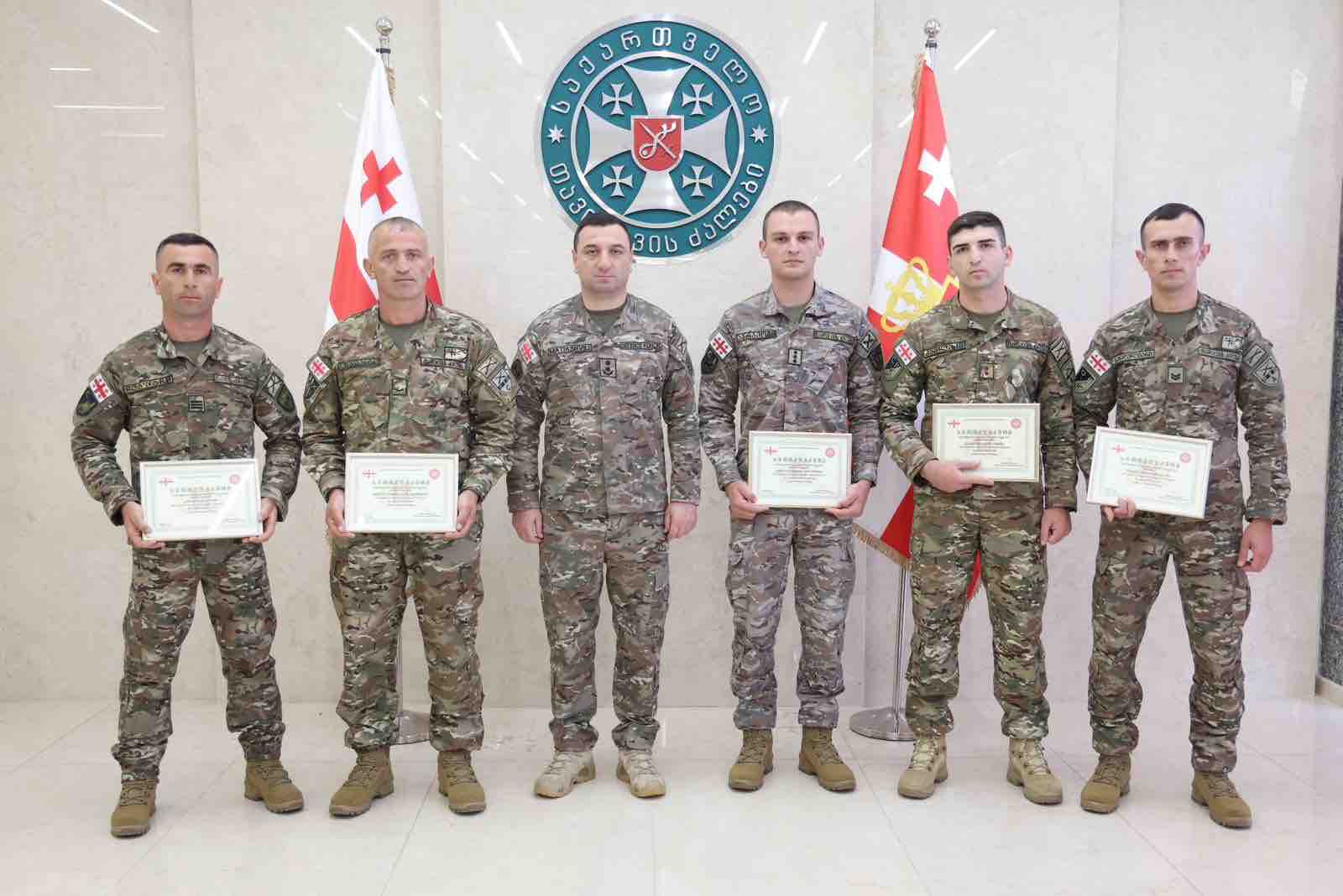 საქართველოს თავდაცვის ძალების გენერალურ შტაბში საკონტრაქტო სამხედრო სამსახურიდან საუკეთესო სამხედრო მოსამსახურეების დაჯილდოების ცერემონია გაიმართა. აღნიშნულის შესახებ ინფორმაციას საქართველოს თავდაცვის სამინისტრო ავრცელებს. უწყების ცნობით, სამხედრო მოსამსახურეებს სერტიფიკატები და სამკერდე ნიშნები საქართველოს თავდაცვის ძალების მეთაურმა, გენერალ-მაიორმა გიორგი მათიაშვილმა გადასცა. „თავდაცვის ძალების მეთაურმა კაპრალ ზურა ლაფაჩს, უმცროს სერჟანტ ივანე გუგუმბერიძეს,სერჟანტ ზურაბ ბენდელიანს, ლეიტენანტ ლევან კამლაძეს და უფროს ლეიტენანტ ლაშა აბრამოვს მოვალეობის პირნათლად შესრულებისთვის მადლობა გადაუხადა და სამომავლოდ წარმატება უსურვა. საუკეთესო სამხედროების შერჩევა კვარტალში ერთხელ, სხვადასხვა კრიტერიუმით, მათ შორის - დისციპლინის, ფიზიკური და საბრძოლო მომზადების დონით, დაკისრებული მოვალეობების შესრულების ხარისხით, გადაწყვეტილების მიღებისა და გუნდური მუშაობის უნარით ხორციელდება. პროექტის მიზანია, სამხედრო მოსამსახურეების მოტივაციისა და საბრძოლო მზადყოფნის დონის ამაღლება“,- აღნიშნულია ინფორმაციაში.