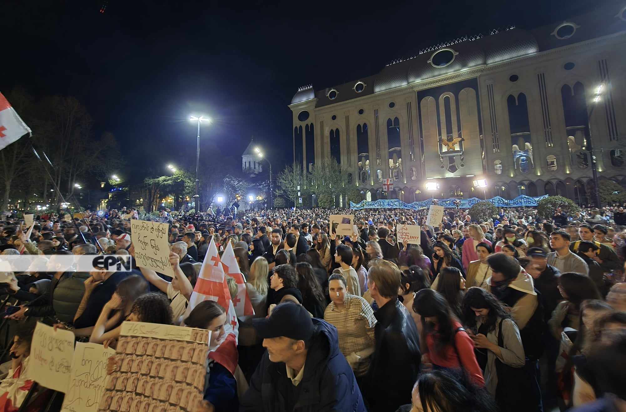 პარლამენტთან მიმდინარე "უცხოური გავლენის გამჭვირვალობის შესახებ" კანონპროექტის საწინააღმდეგო აქციის მონაწილეებმა მთავრობის ადმინისტრაციასთან მსვლელობით გადანაცვლების გადაწყვეტილება მიიღეს. ამის შესახებ აქციის ერთ-ერთმა წამყვანმა, ლევან ცუცქირიძემ მას შემდეგ განაცხადა, რაც "ქართული ოცნებისთვის" მიცემული ერთსაათიანი ვადა ამოიწურა. "ჩვენ გვინდა შემოგთავაზოთ, რომ ჩვენთან ერთად, მშვიდობიანად, მშვიდად, წყნარად წავიდეთ სახელმწიფო კანცელარიასთან და მოვითხოვოთ, რომ გამოვიდეს პრემიერ-მინისტრი და დაგველაპარაკოს. ამიტომ, ჩვენ გვინდა გთხოვოთ, რომ ხელის აწევით მოგვცეთ უფლება და მანდატი, რომ წავუძღვეთ ამ მშვიდობიან მანიფესტაციას... ჩვენ ვართ მშვიდობიანი მანიფესტანტები, მშვიდობიანი დემონსტრანტები, არ აყვეს არავინ პროვოკაციას, წავიდეთ, მივიდეთ და მოვითხოვოთ ამ კანონის უკან დაბრუნება და დაკავებულების გათავისუფლება",- განაცხადა ცუცქირიძემ. აღსანიშნავია, რომ მანამდე აქციის მონაწილეებმა "ქართული ოცნების" ხელისუფლებას კანონპროექტის უკან გასაწვევად ერთსაათიანი ვადა მისცეს.