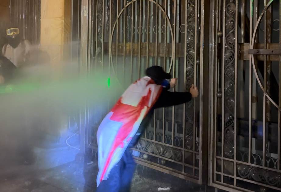 თბილისში, რუსთაველის გამზირზე მიმდინარე აქციის მონაწილეებმა პარლამენტის რკინის კარი დააზიანეს. როგორც „ექსპრესნიუსის“ კორესპონდენტი ადგილიდან იუწყება, ამ წუთებში წყლის ჭავლს საკანონმდებლო ორგანოს ეზოდანაც უშვებენ. საპოლიციო ძალები წყლის ჭავლის დახმარებით ცდილობენ, რომ მოქალაქეები რკინის კარს განარიდონ. პარალელურად, წყლის ჭავლს უშვებენ ჭიჭინაძის ზედა მხარეს, სადაც ასევე მოქალაქეები არიან შეკრებილები. აქციის მონაწილეები პერიოდულად სკანდირებენ „საქართველო“.