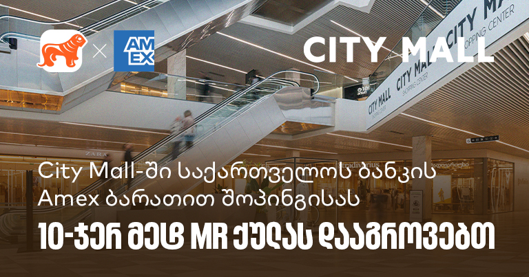 City Mall-ში საქართველოს ბანკის საკრედიტო Amex ბარათით შოპინგისას 10-ჯერ მეტ MR ქულას დააგროვებთ
