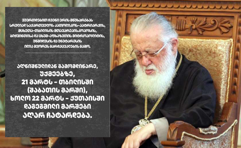 ილია მეორეს გარდაცვალების გამო, 21 მარტს თბილისში, ხოლო 22 მარტს ქუთაისში დაგეგმილი მარშები აღარ ჩატარდება